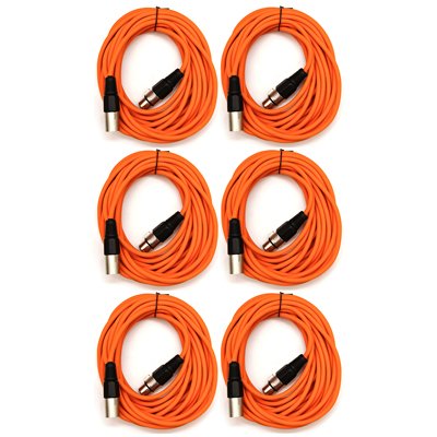 (6 Pack) Orange 25' XLR Patch or Microphone Cable